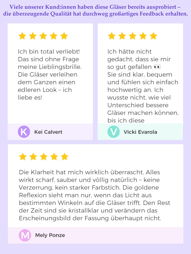 Wenn Sie mit Ihrer Brille nicht zufrieden sind, können Sie diese innerhalb von 30 Tagen nach Lieferung umtauschen oder zurückgeben.